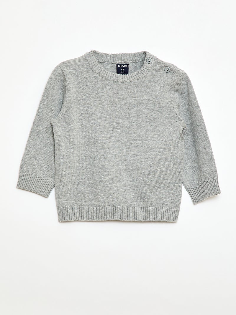 De fijngebreide trui met knoopsluiting bij de hals, zodat je hem makkelijker aantrekt.