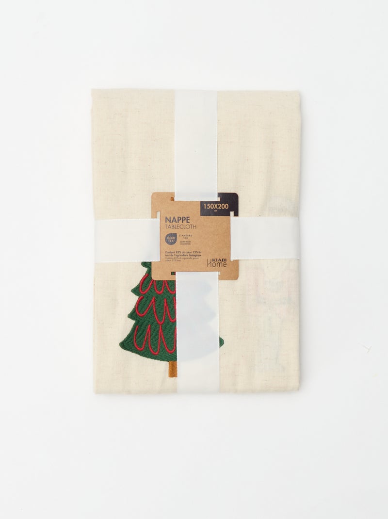 Geborduurde katoenen en linnen kersttafelkleed 150x200 - Biege