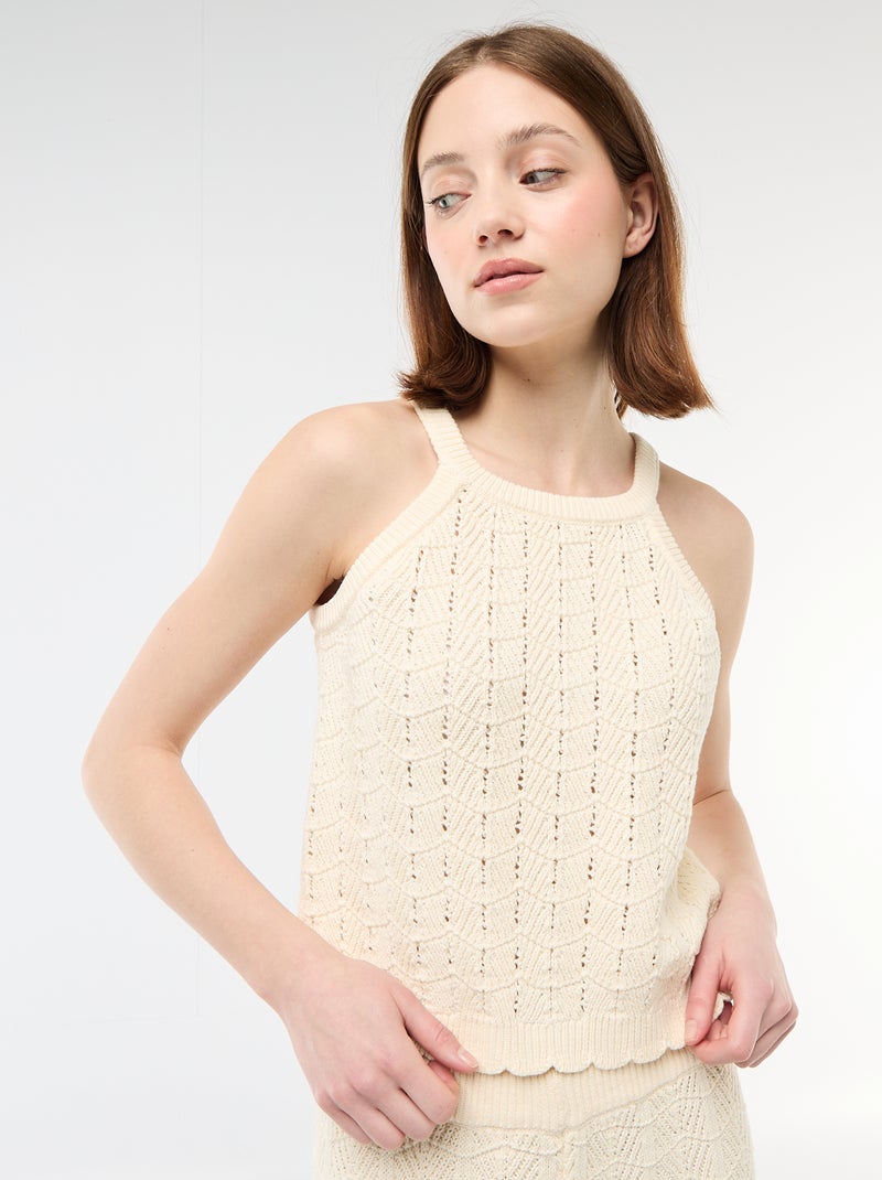 Gehaakte top met Amerikaanse armsgaten - Biege