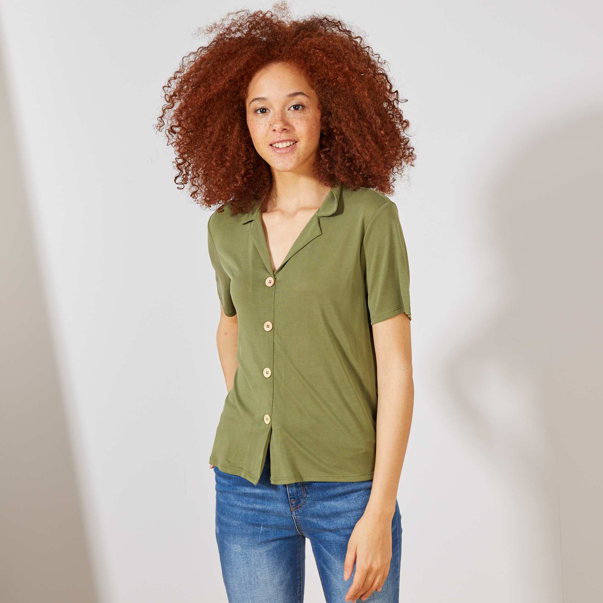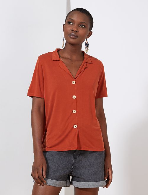 Uitgevoerd in een zacht en soepel tricot: deze shirtblouse van tricot is super luchtig en zacht op de huid.