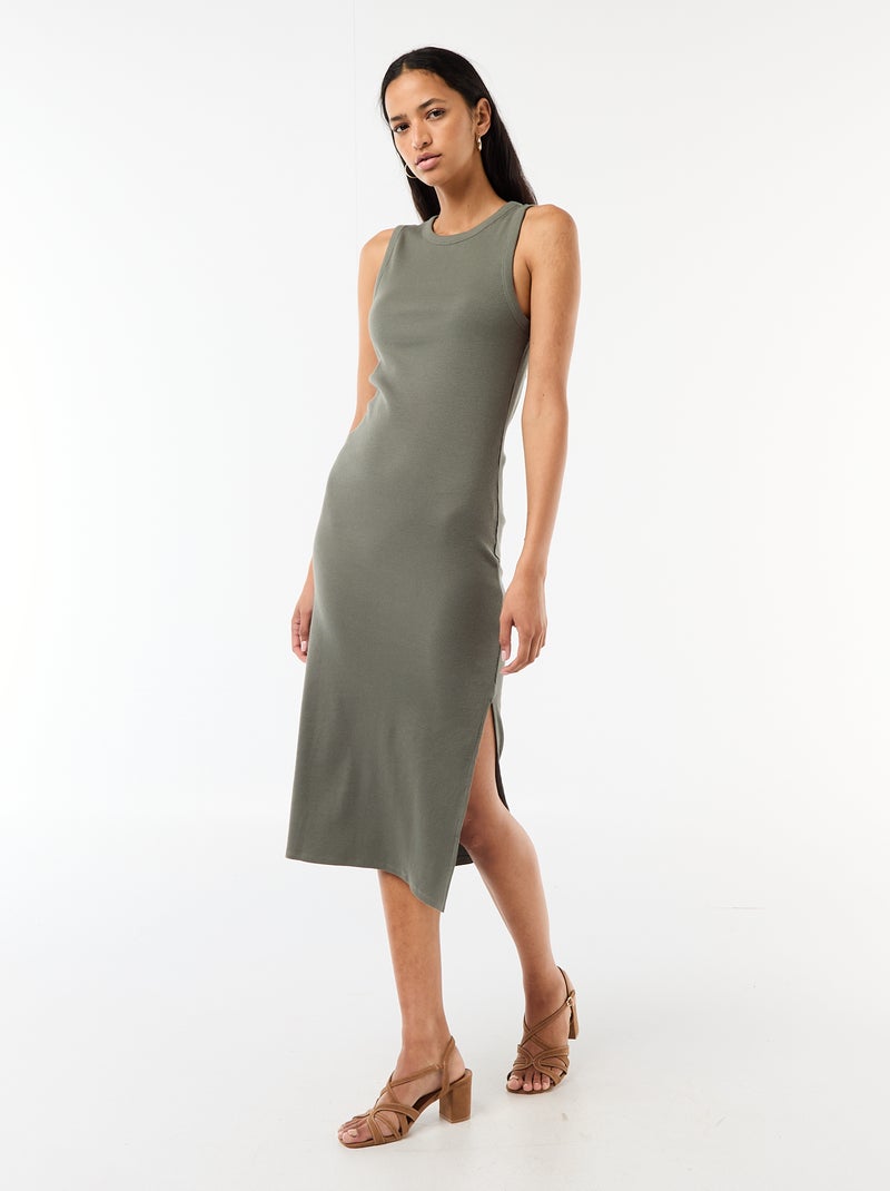 Geribde mouwloze midi-jurk - Groen