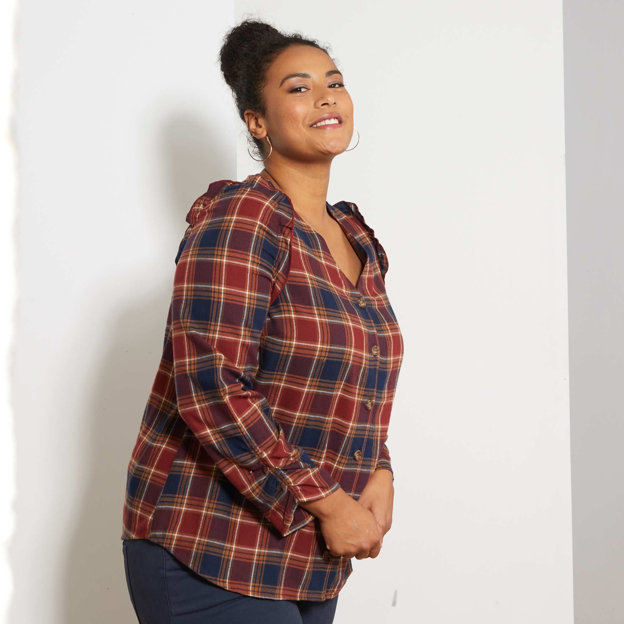 Ruitjes in een moderne versie voor deze retro blouse! Breek met alle stijlcodes en combineer 'm met een klassieke jeans in destroyed look!