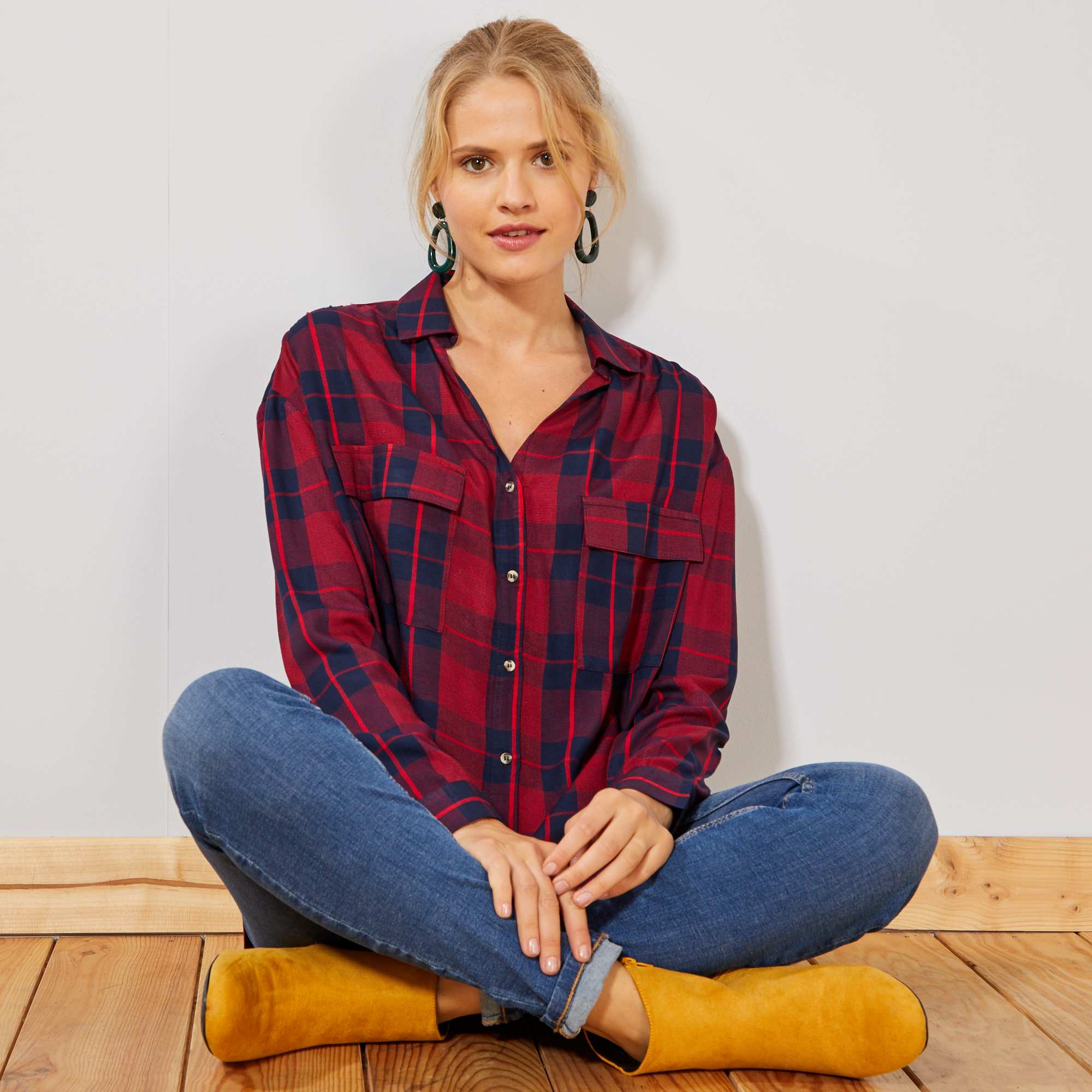 - Geruite blouse