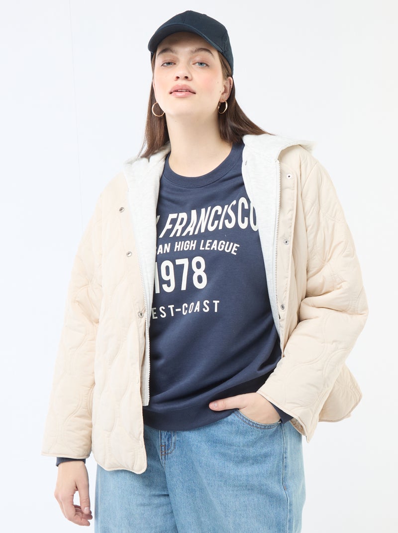 Gewatteerde jas met kap en uitneembaar fleece binnenstuk - Biege