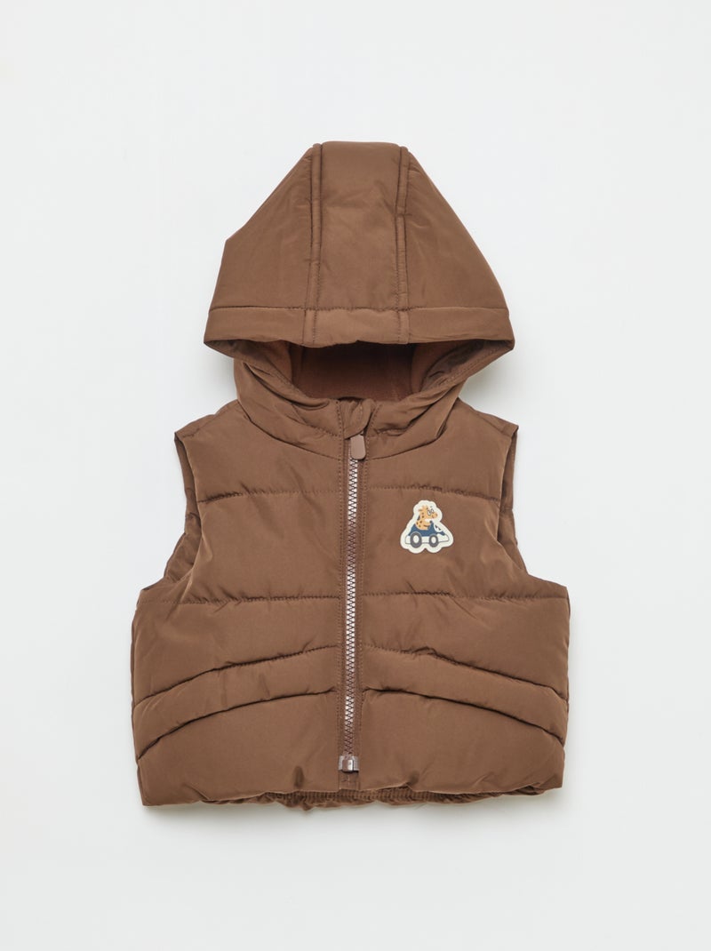 Gewatteerde mouwloze bodywarmer met capuchon - Biege