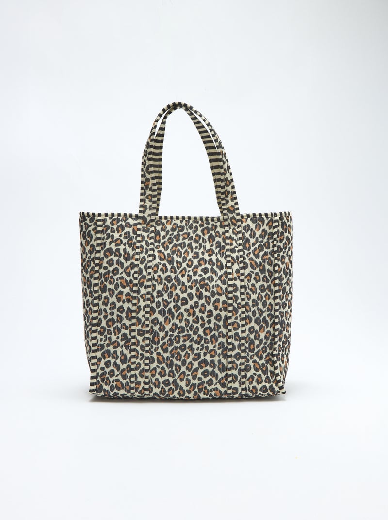 Gewatteerde shopper met luipaardprint - Bruin