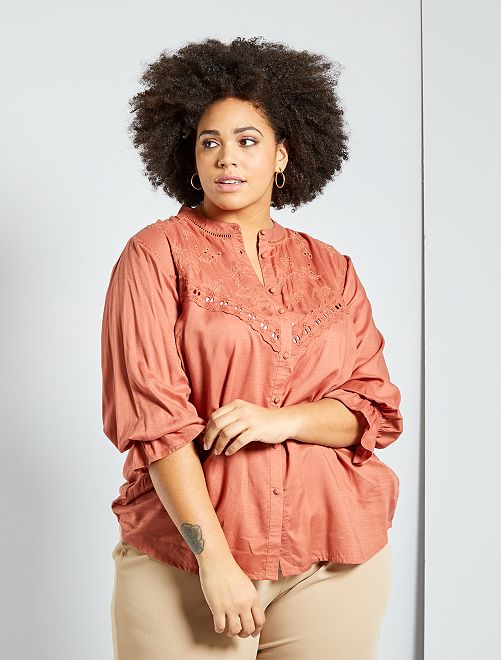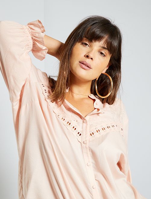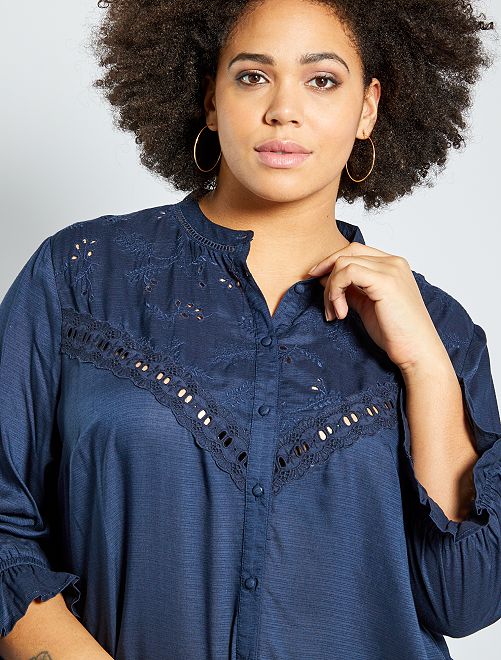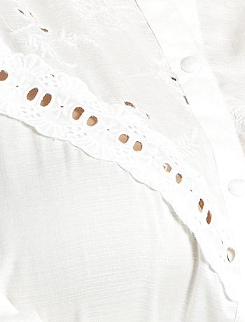 Een soepel hemd met borduursels voor een romantische toets! Je zal niet kunnen weerstaan aan de aangename stof en de volantmouwen!