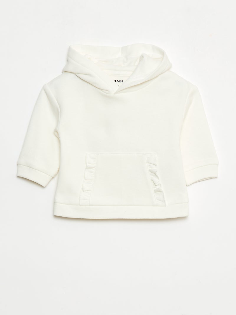 Hoodie met kangoeroezak met ruches - Wit