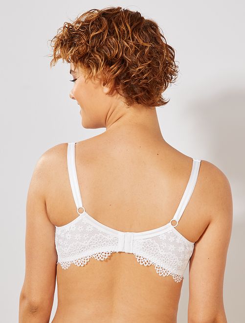 Dankzij het gebloemde kant ziet dit model er romantisch uit. Speciaal ontworpen voor het comfort en de ondersteuning van volle boezems.