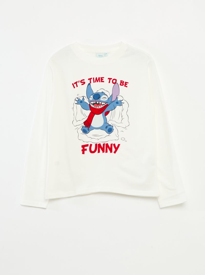 Kerst T-shirt 'Disney' 'Stitch' van katoenjersey - Wit