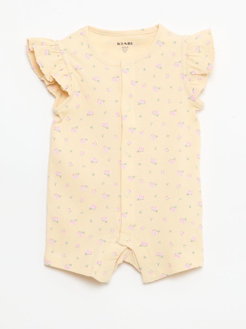Kort mouwloos slaappakje van katoen met ruches - Biege