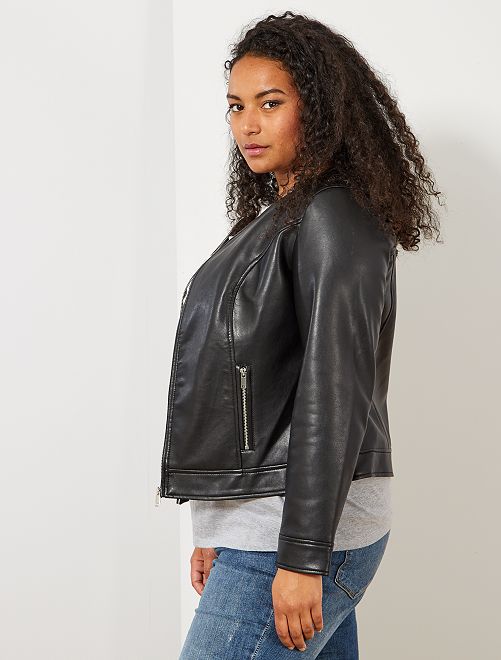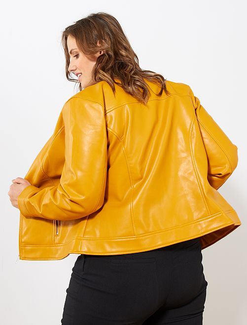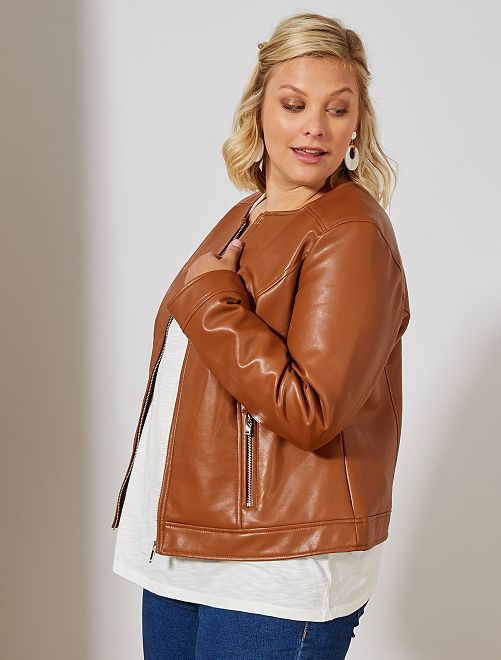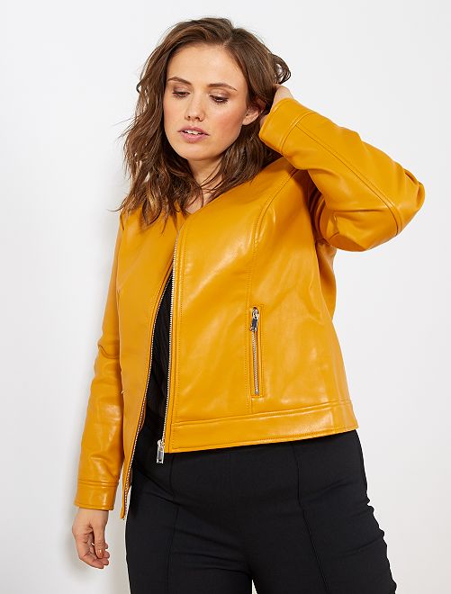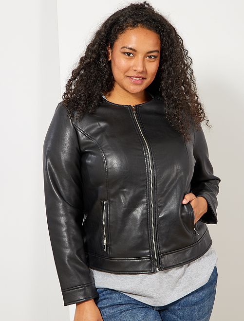 Kraagloos jack van synthetisch leer