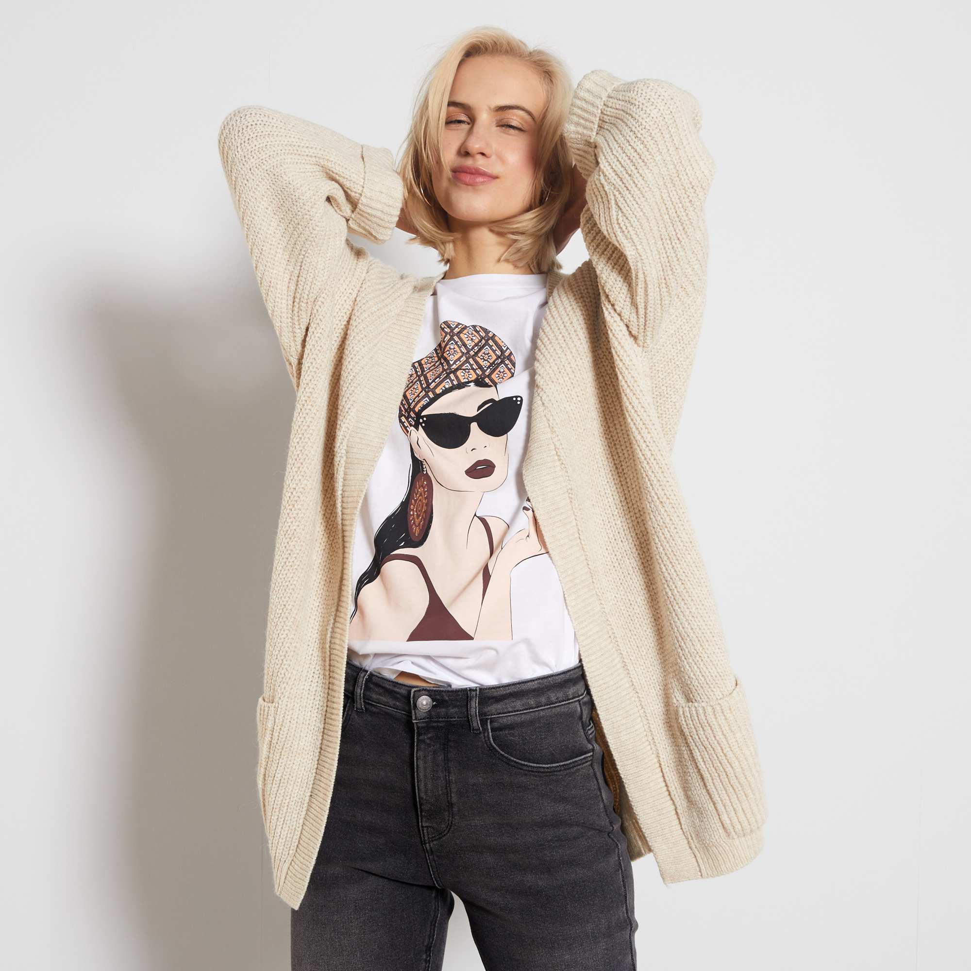 - Ons model draagt maat M en is 1,77 m lang