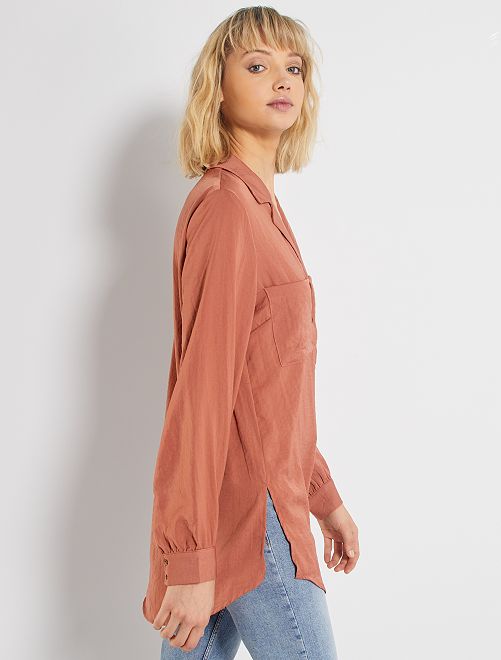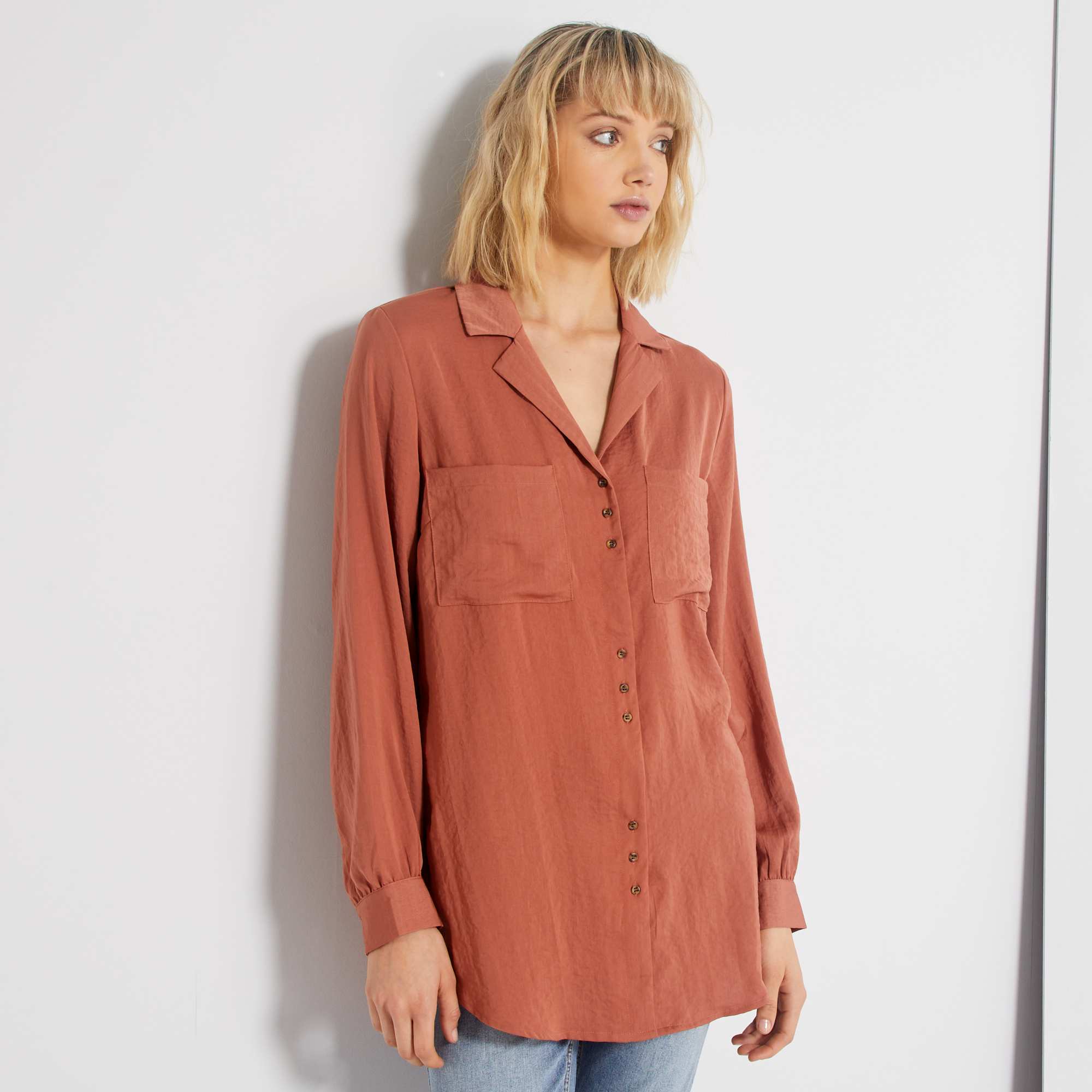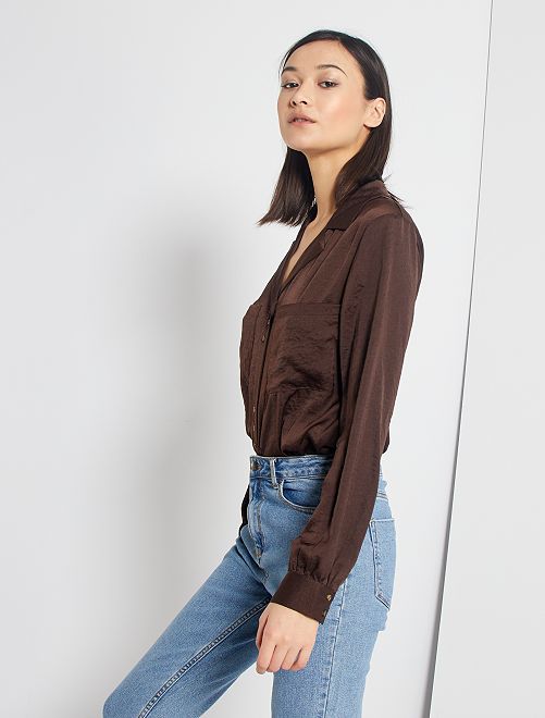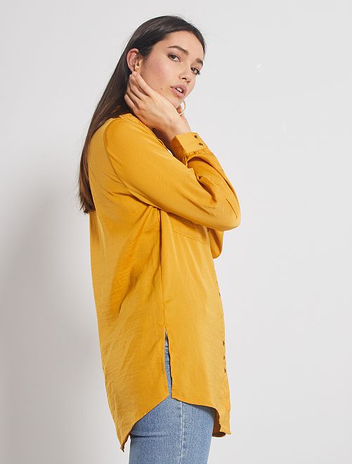 - Lange, gesatineerde overhemdbloes