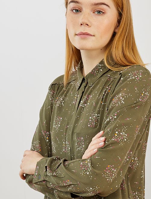 Prachtige soepele voile vol mooie bloemetjes: deze blouse combineer je gemakkelijk met een jeans of een rok voor een vrouwelijke uitstraling. Dit lange model staat perfect bij een jegging!