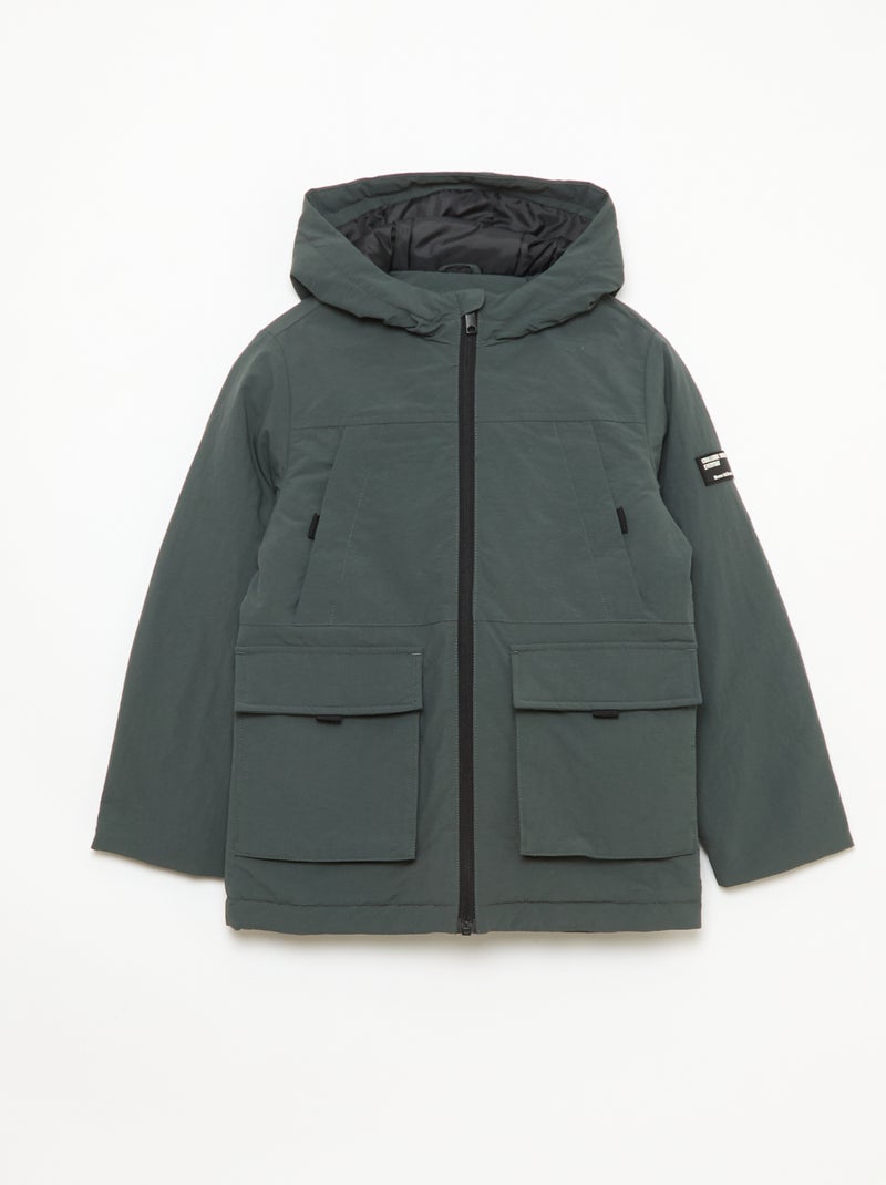 Lichte parka met kap en 2 opgestikte zakken met klep - Groen