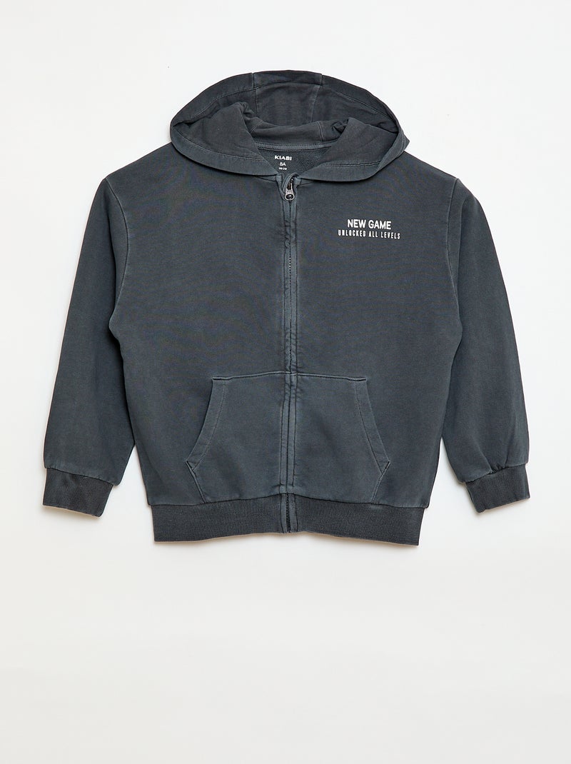 Losvallend vest met capuchon en animatie op de rug van katoen - Zwart