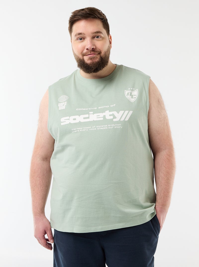 Mouwloos T-shirt van bedrukt katoen - Groen