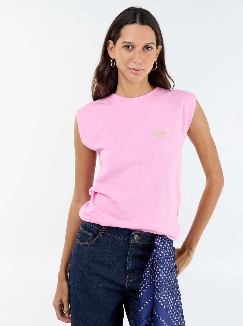 Mouwloos T-shirt van jerseytricot - Rose