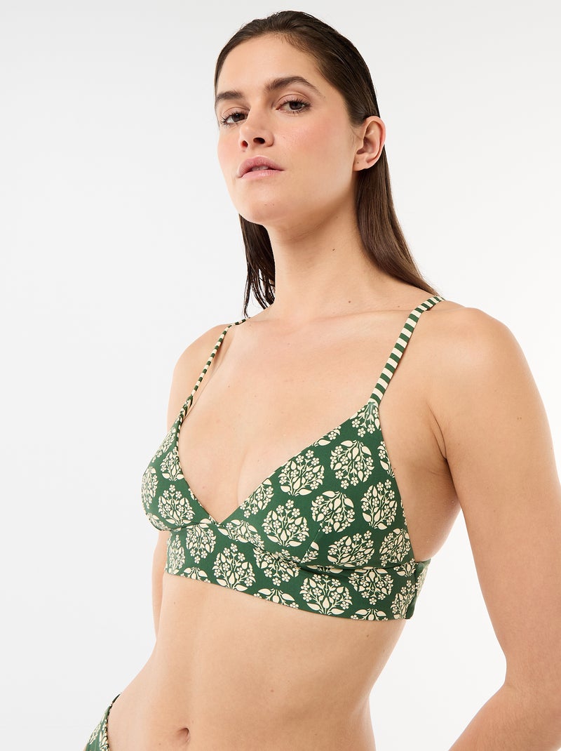 Een 2-in-1 triangelbikinitop met een omkeerbaar model: de ene dag strepen, de andere dag een print.
