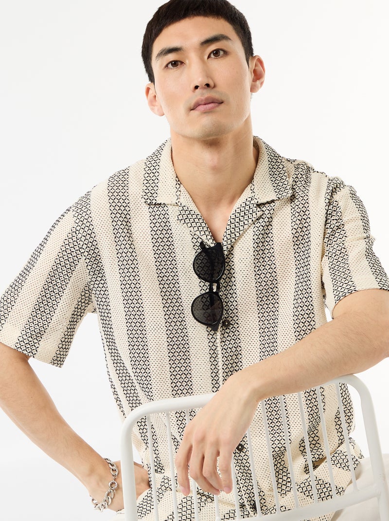 Overhemd met korte mouwen van gehaakte stof - Wit