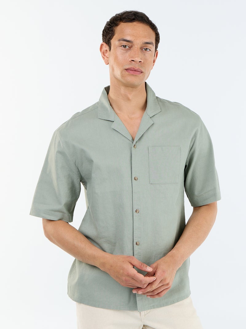 Overhemd met korte mouwen van linnenmix met borstzak - Groen