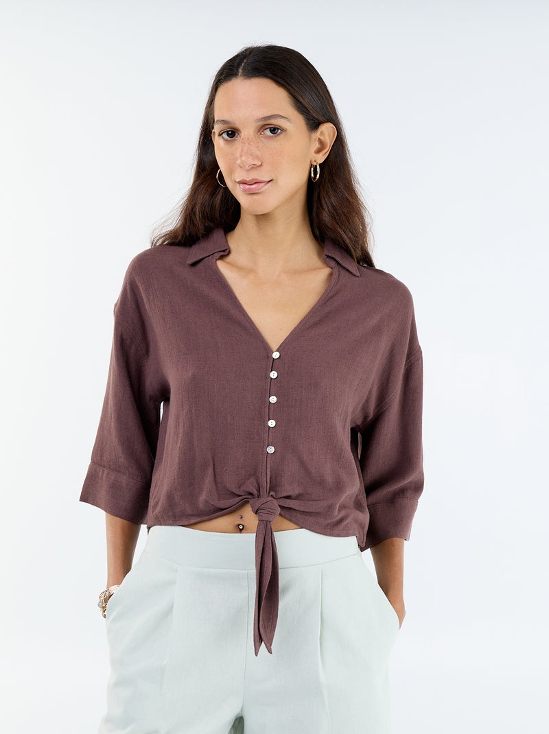 Oversized blouse met knoopdetail - Bruin