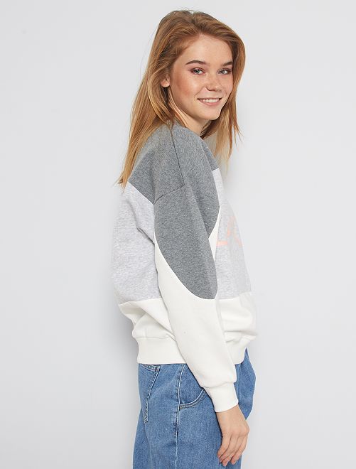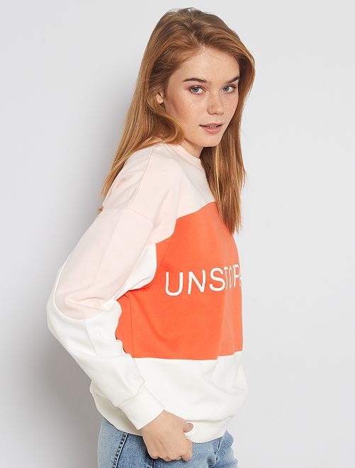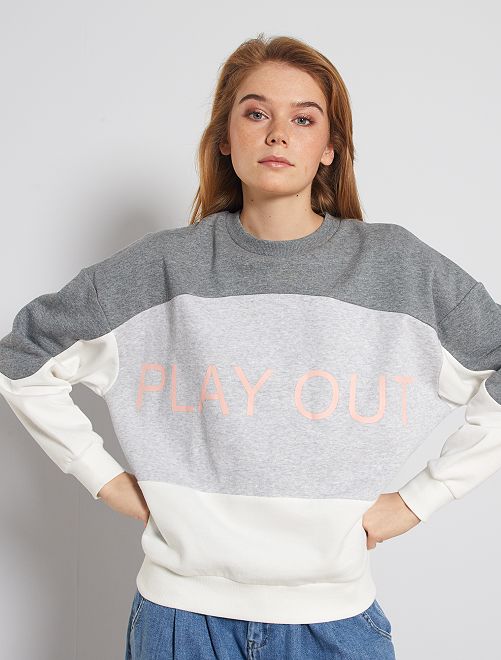 - Afgewerkt met ribboord bij de hals, de mouwboorden en onderaan