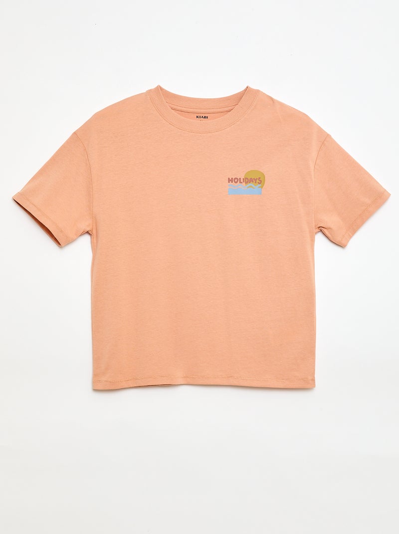 Een T-shirt dat je doet denken aan vakantie en de zon!