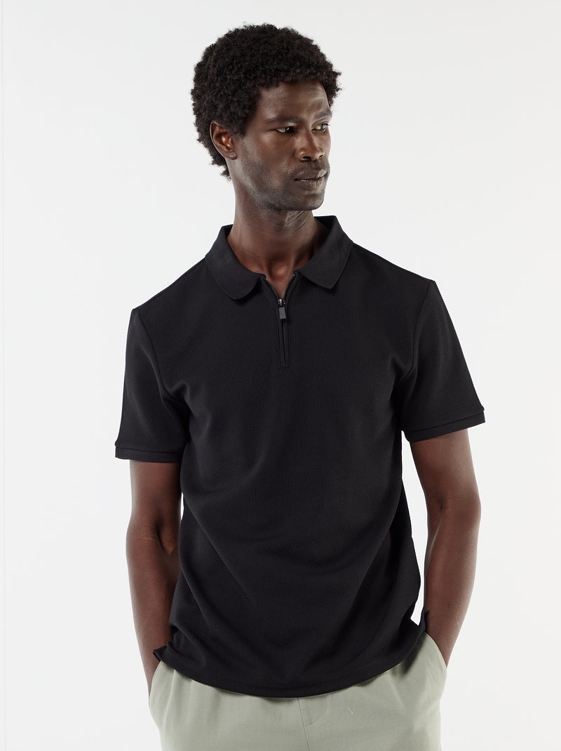 Polo van gewafelde stof met ritskraag - Zwart