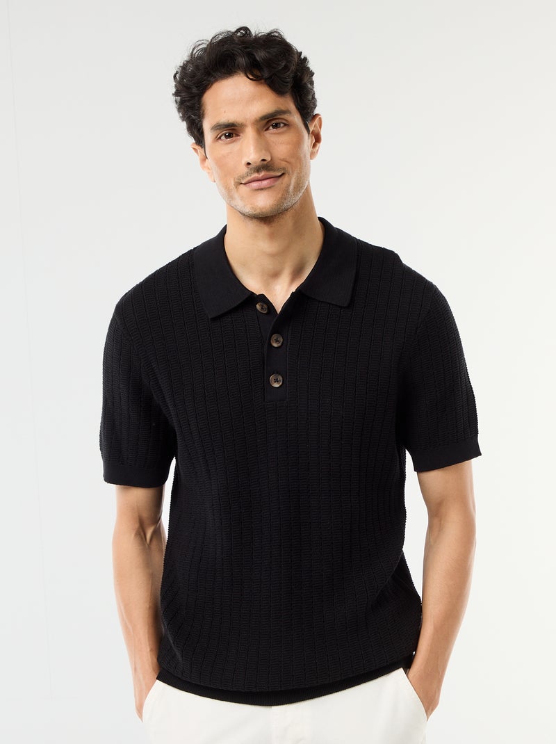 Polo van jerseytricot met tricot-effect - Zwart