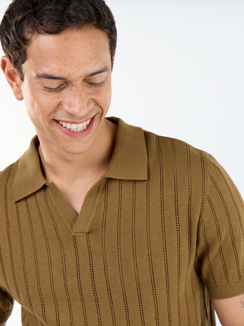 Polo van opengewerkt breisel met korte mouwen - Bruin