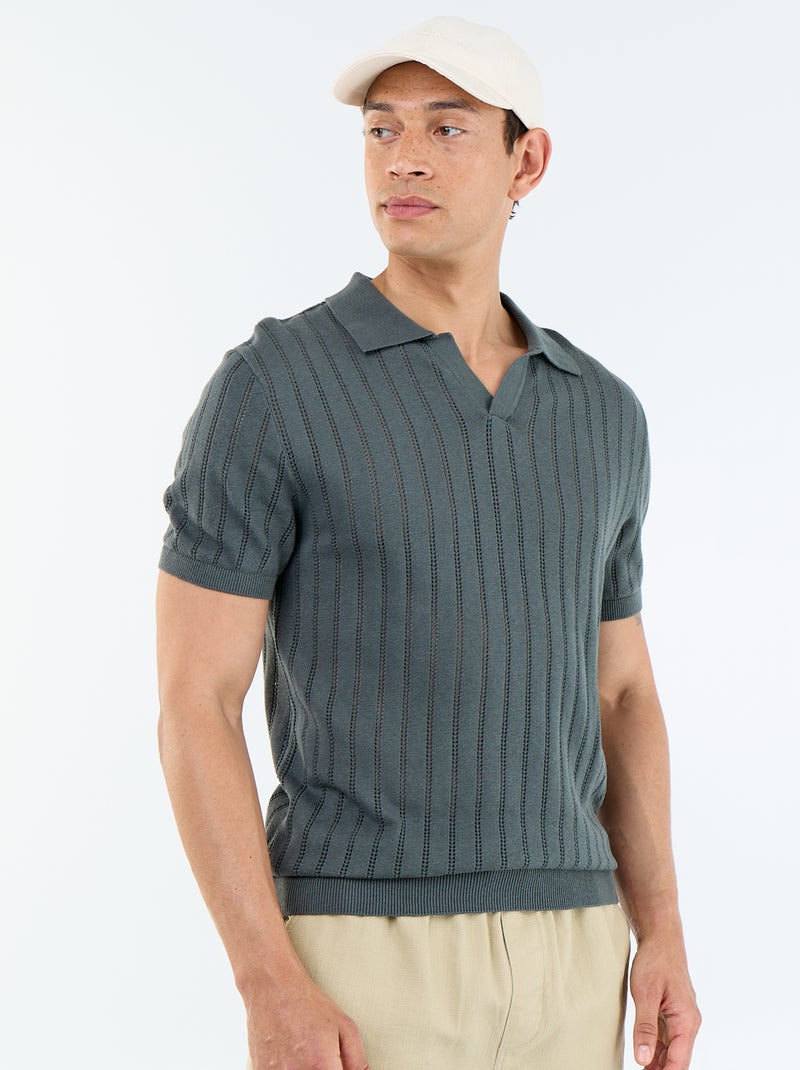 Polo van opengewerkt breisel met korte mouwen - Kaki