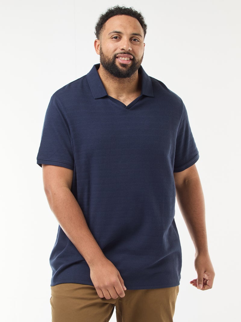 Polo van stretchkatoen met korte mouwen - Blauw