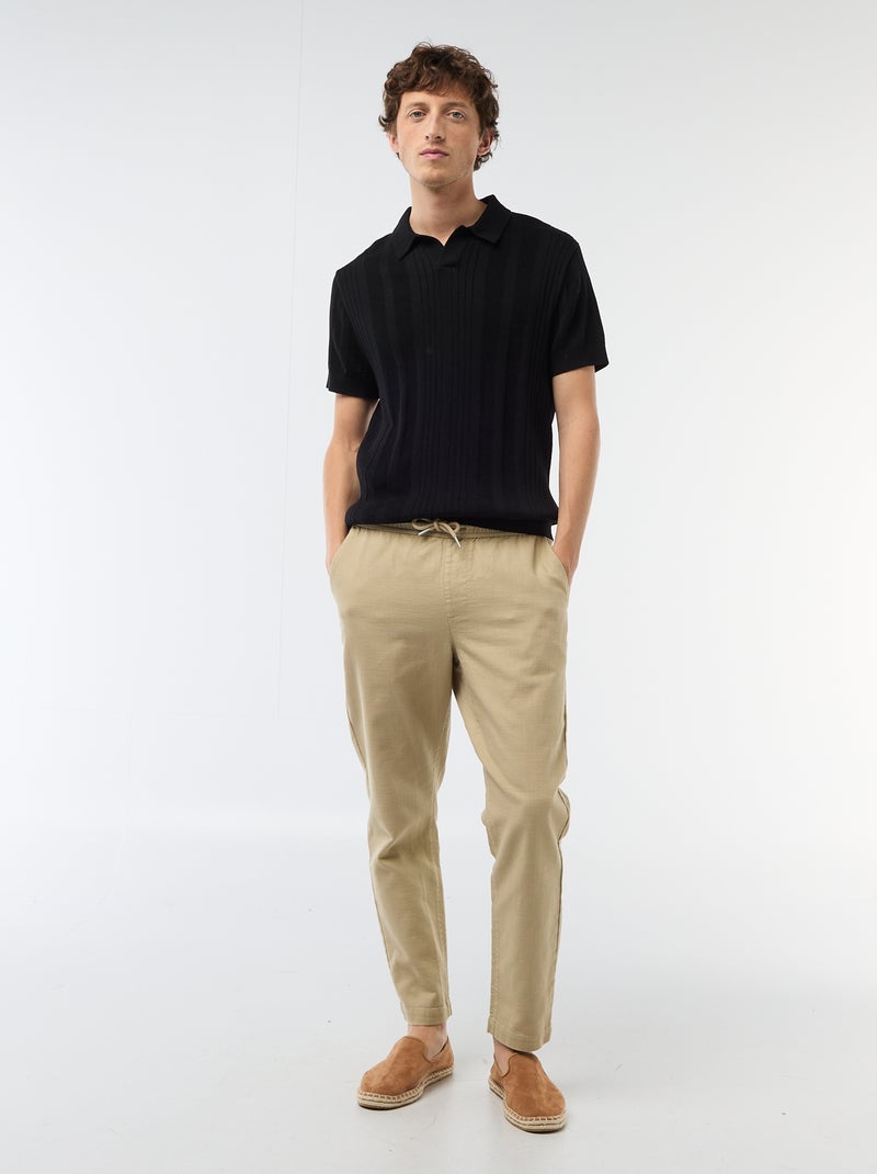 Rechte broek met elastische taille - Biege