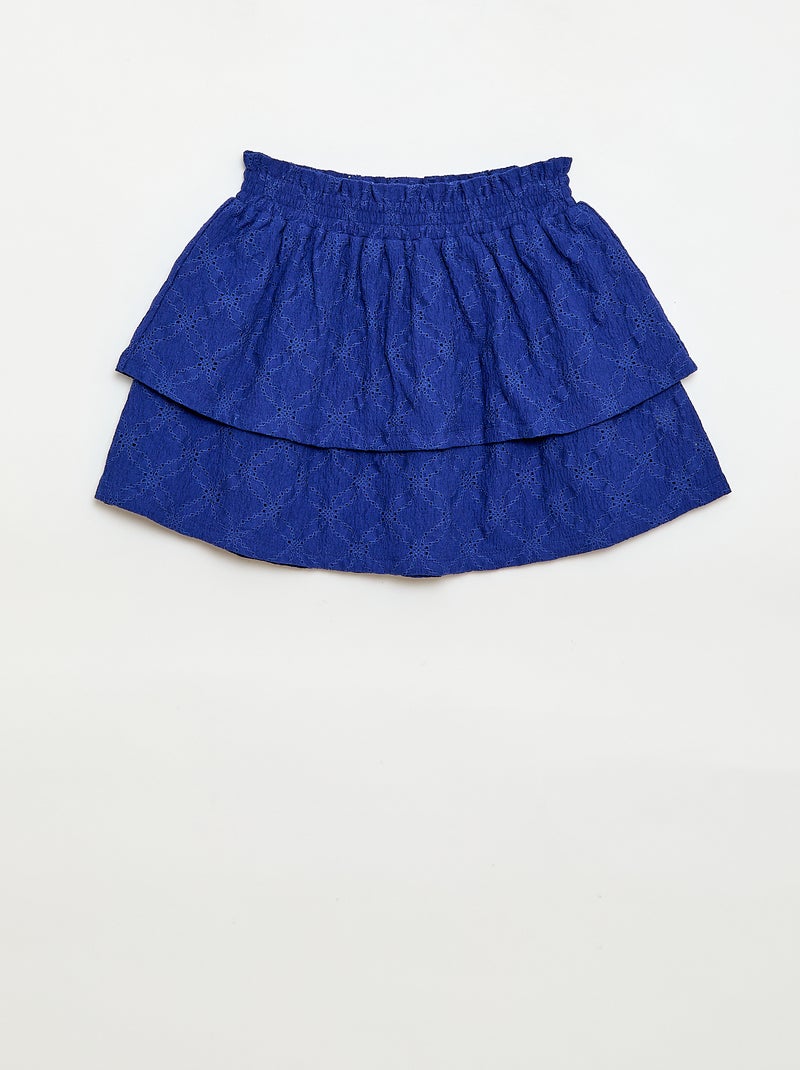 Rok van broderie anglaise met ruches - Blauw