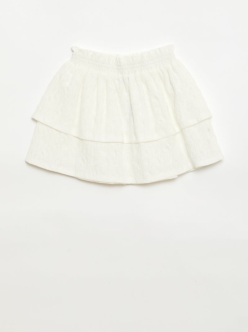 Rok van broderie anglaise met ruches - Wit