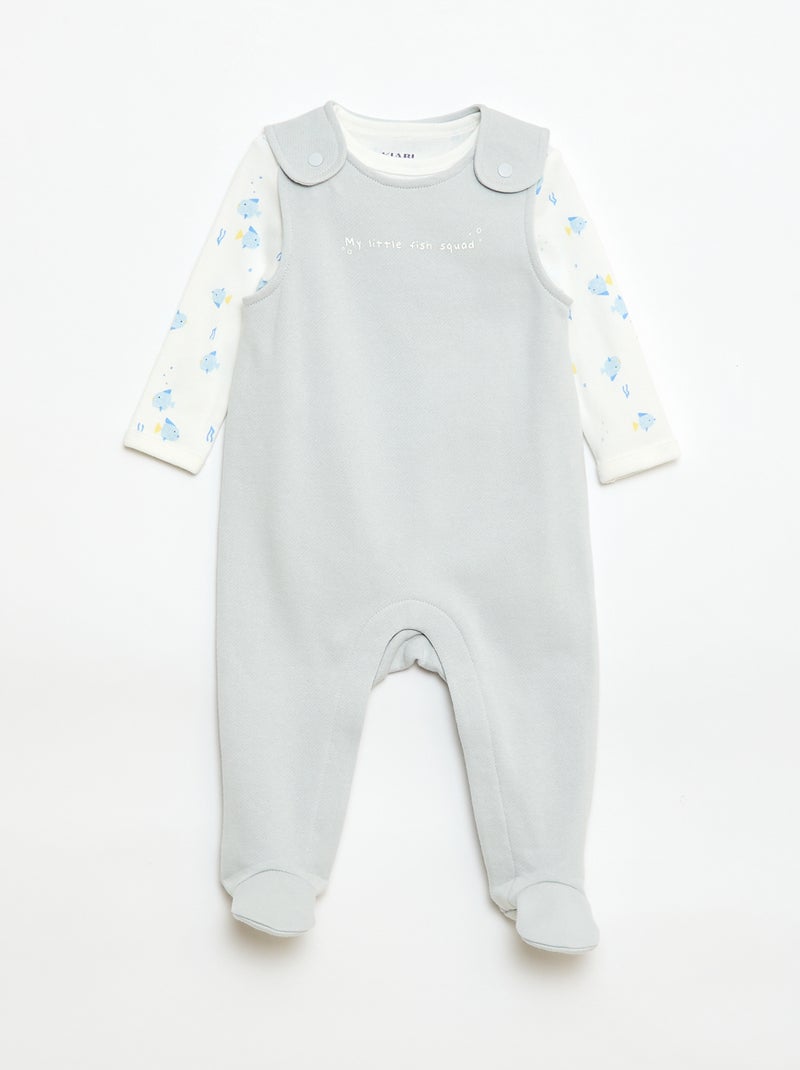 Set met body met lange mouwen + tuinbroek met voetjes - Wit