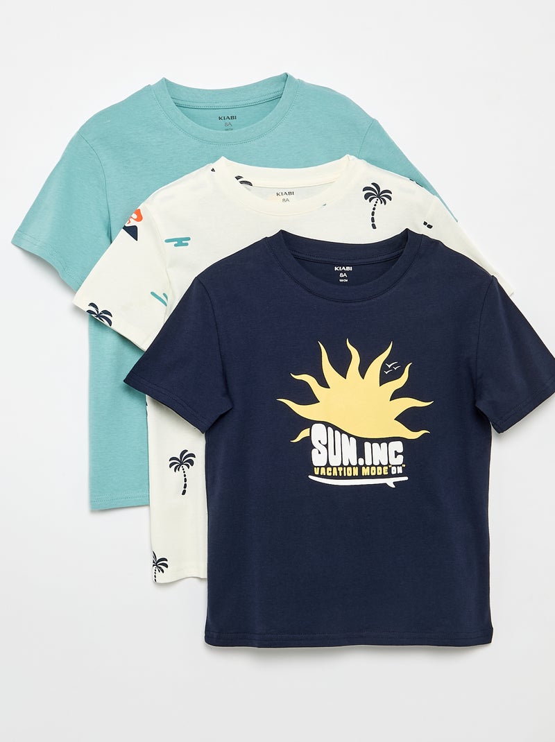 Set van 3 katoenen T-shirts - Blauw