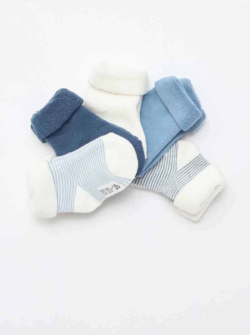 Set van 5 paar sokken met omslag van katoen - Blauw