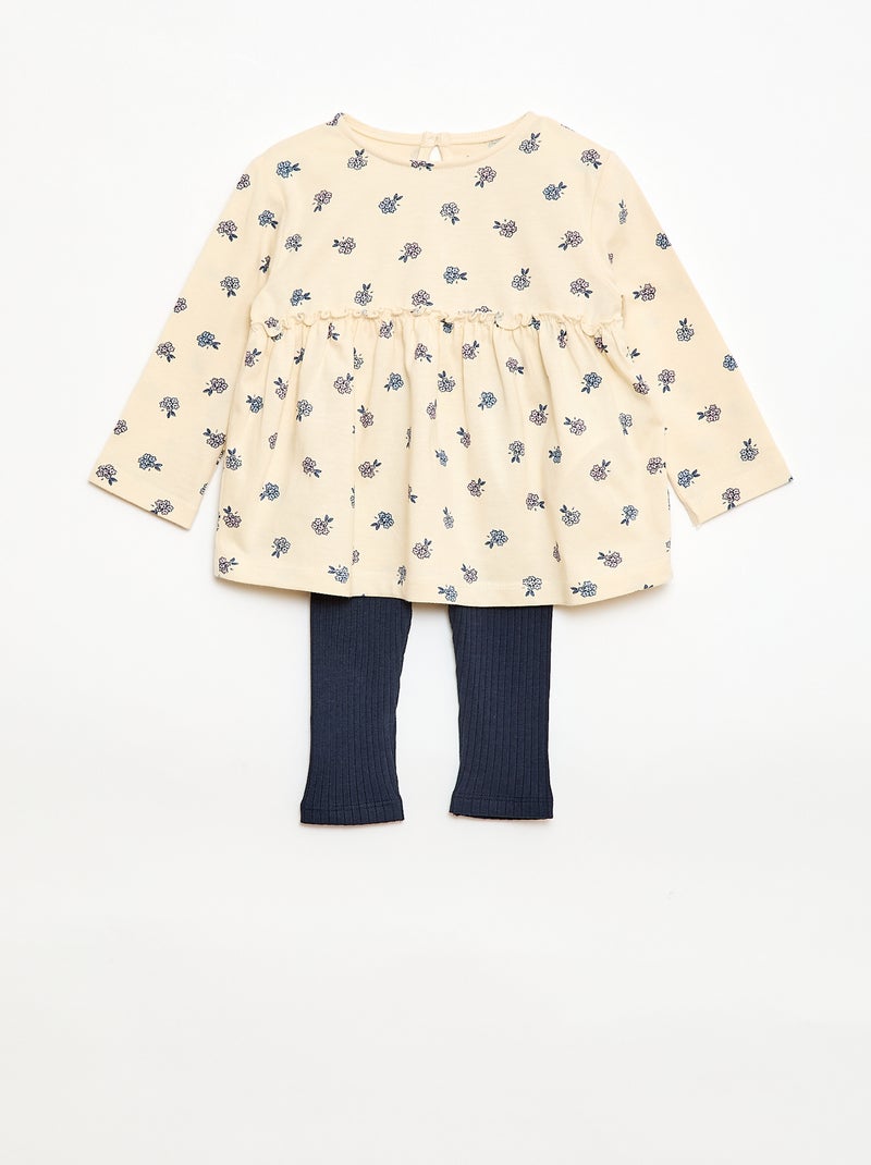 Setje met T-shirt + legging met ribbeltextuur - 2-delig - Wit