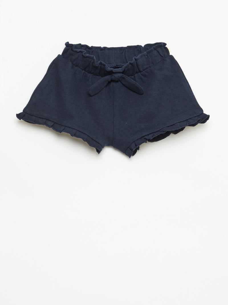 Short met ruches en strik in de taille - Blauw
