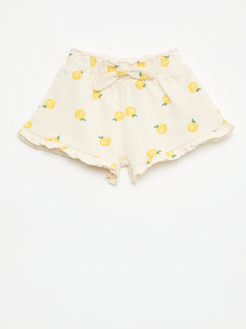 Short van lichtgewicht sweatstof met volant - Wit