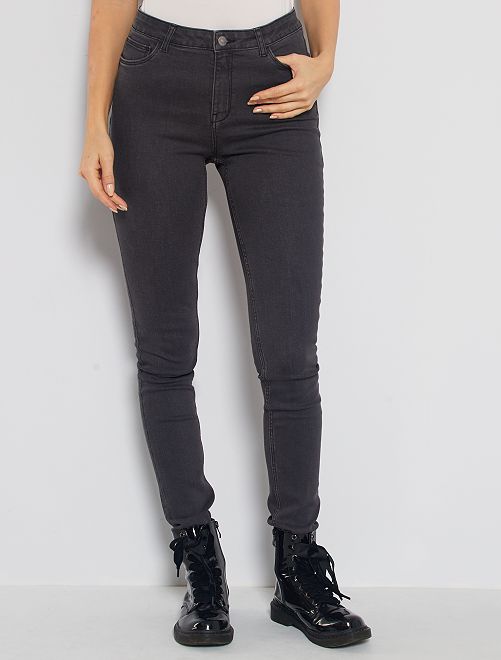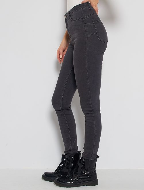 Skinny jeans met hoge taille, lengtemaat 34 - GRIJS