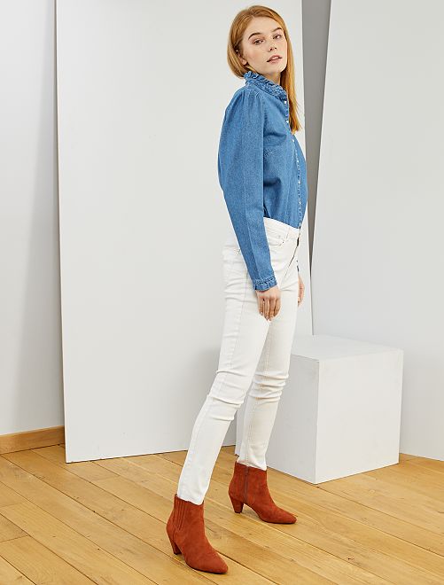 In deze skinny jeans met hoge taille komt je figuur mooi uit.