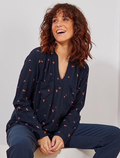 Soepele blouse met Tunesische hals
