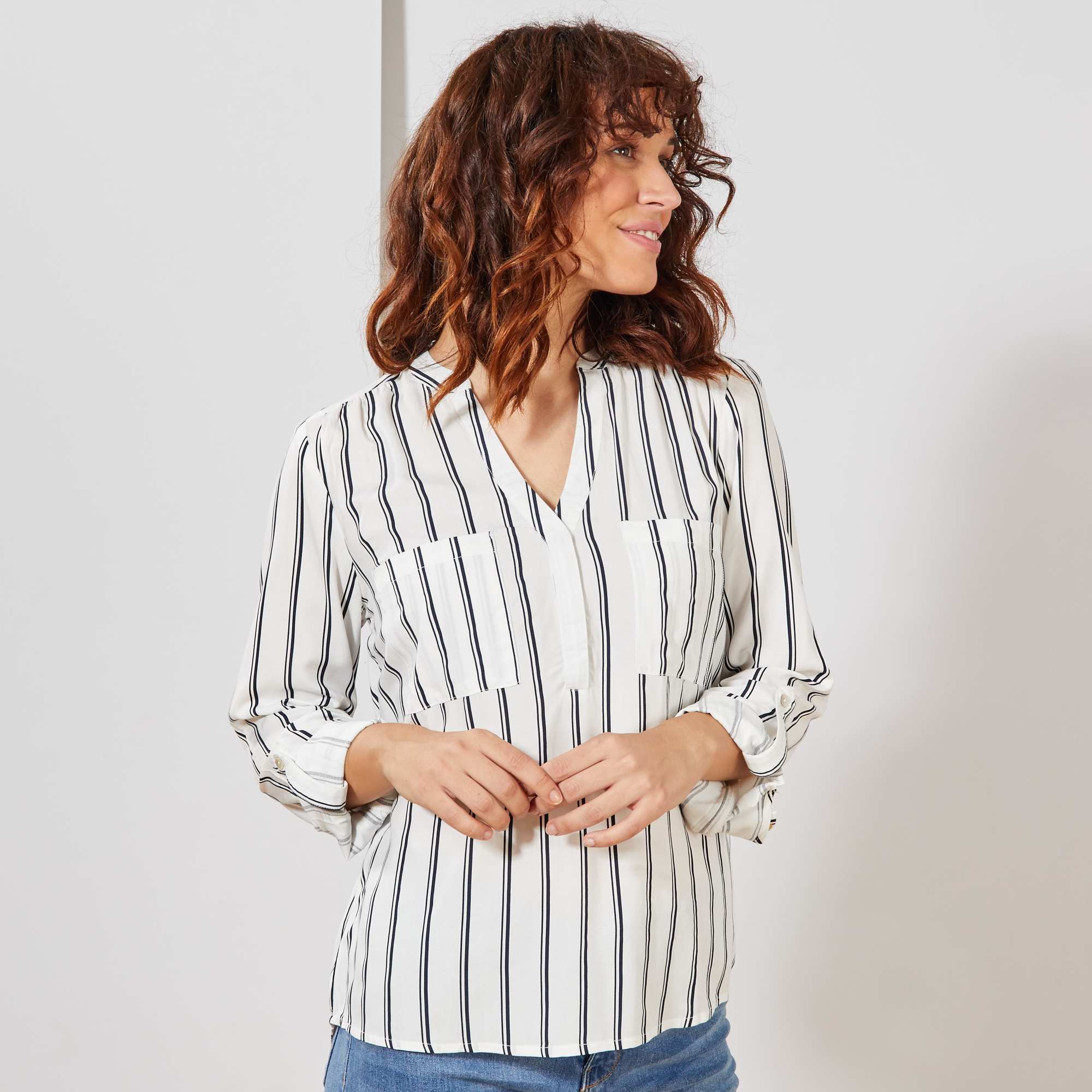 Dankzij de opgerolde mouwen en de Tunesische hals heeft deze soepele blouse een chique, klassieke stijl.