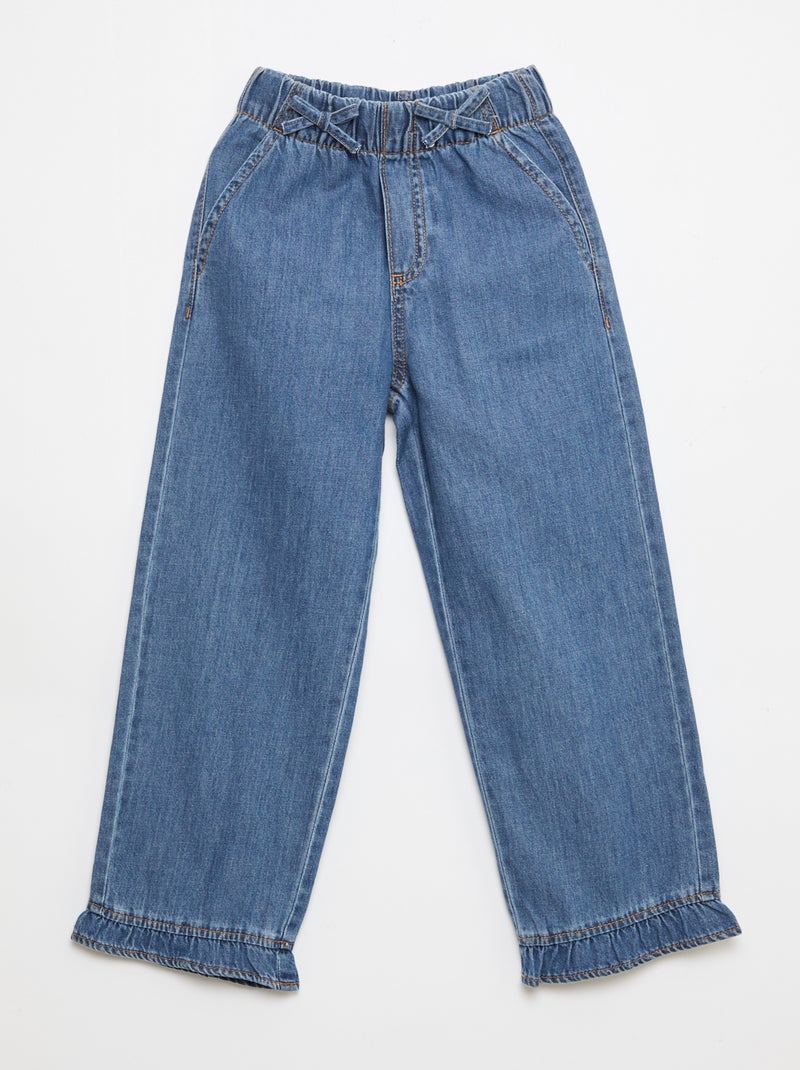 De soepele broek met jeanslook combineert lichtheid en een nonchalante uitstraling.