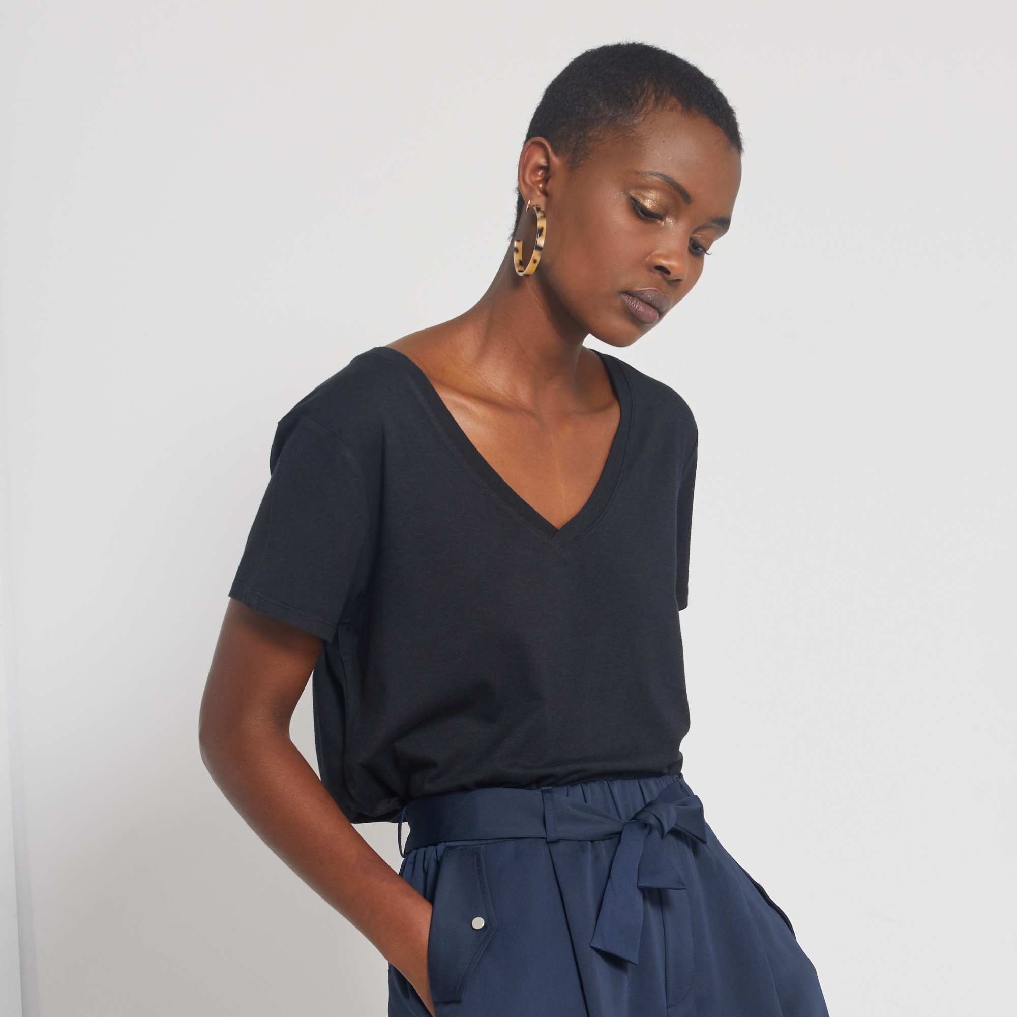 Soepelvallend T-shirt van bamboe-viscose - zwart
