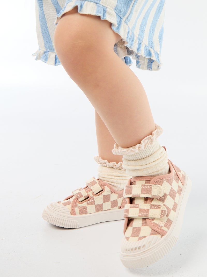 Stoffen sneakers met dambordprint - Rose